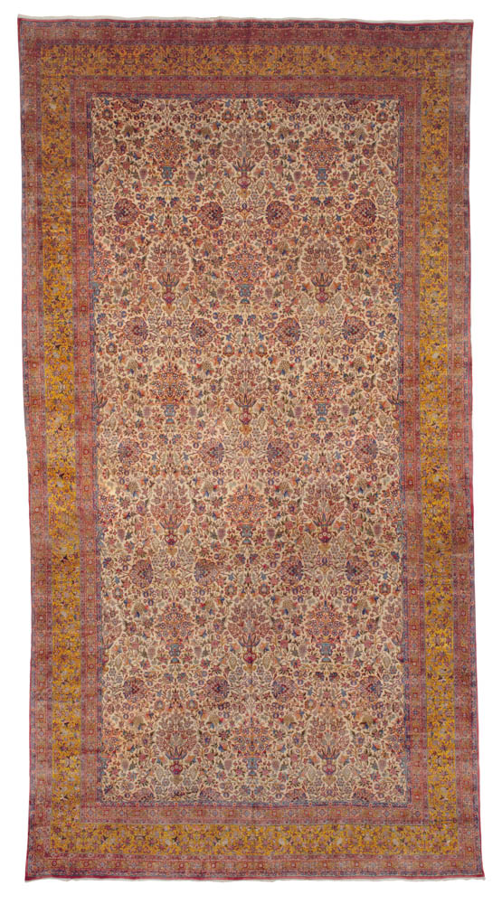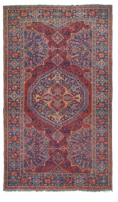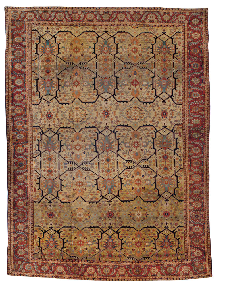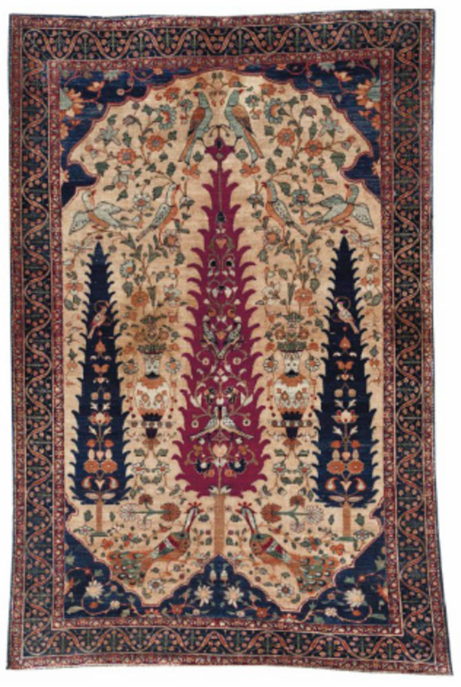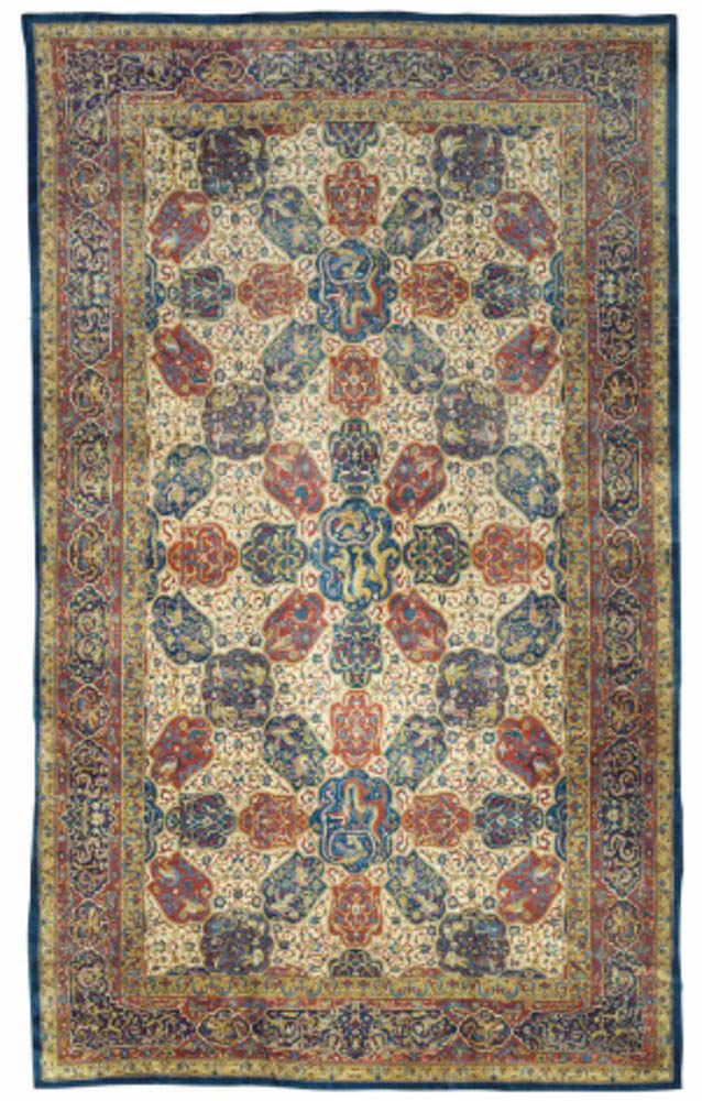 Many of the carpets come from private collections, including the those of Dustin Hoffman, the Dowager Viscountess Rothermere and more. Among the many highlights are a rare and refined silk Kerman prayer rug, an Indian carpet that is a copy of an important 16th century Persian carpet in the Metropolitan Museum of Art, and a Ziegler Sultanabad carpet from western Persia that was in the historic Elveden Hall sale in 1984.