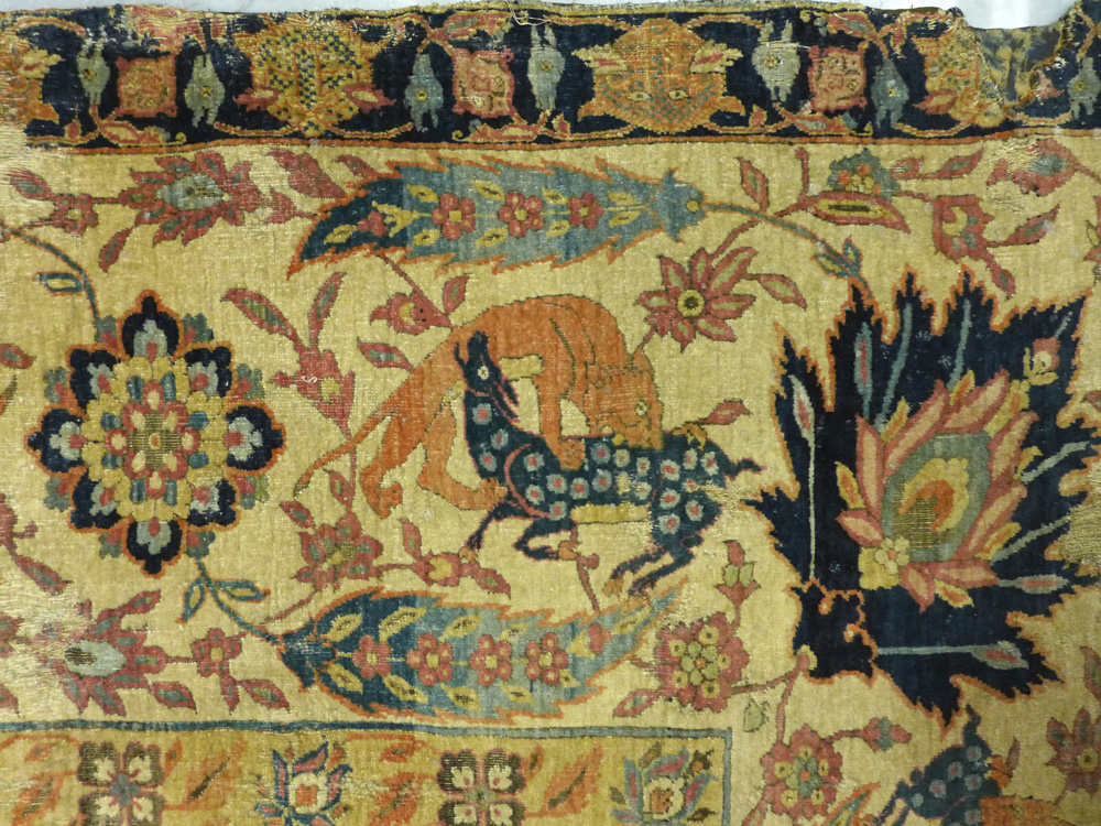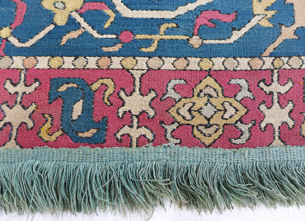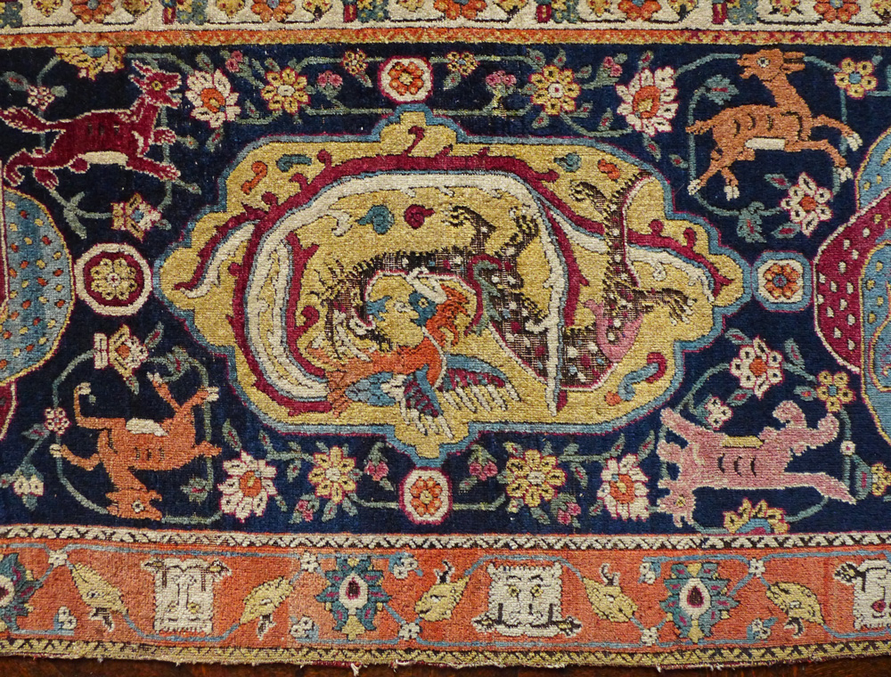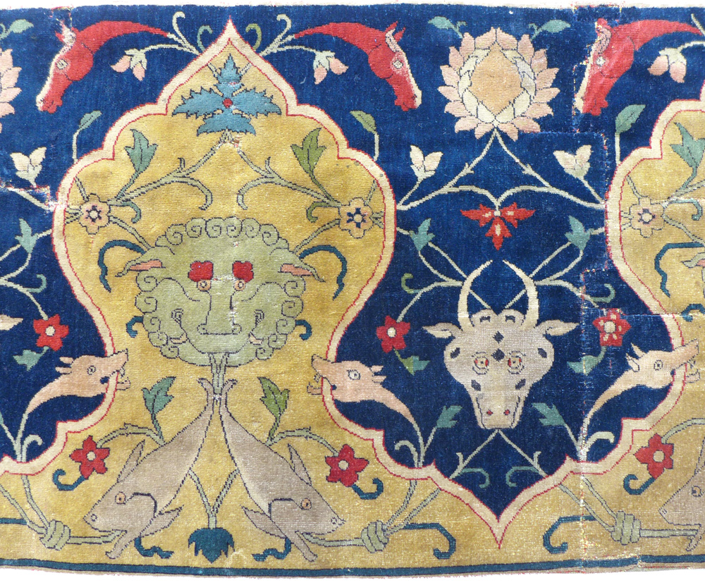 - Border detail of a Sangusko medallion hunting carpet, Safavid Iran, 1500 – 1600 at the Clothworkers’ Centre at Blythe House in Olympia, London. 23-1883