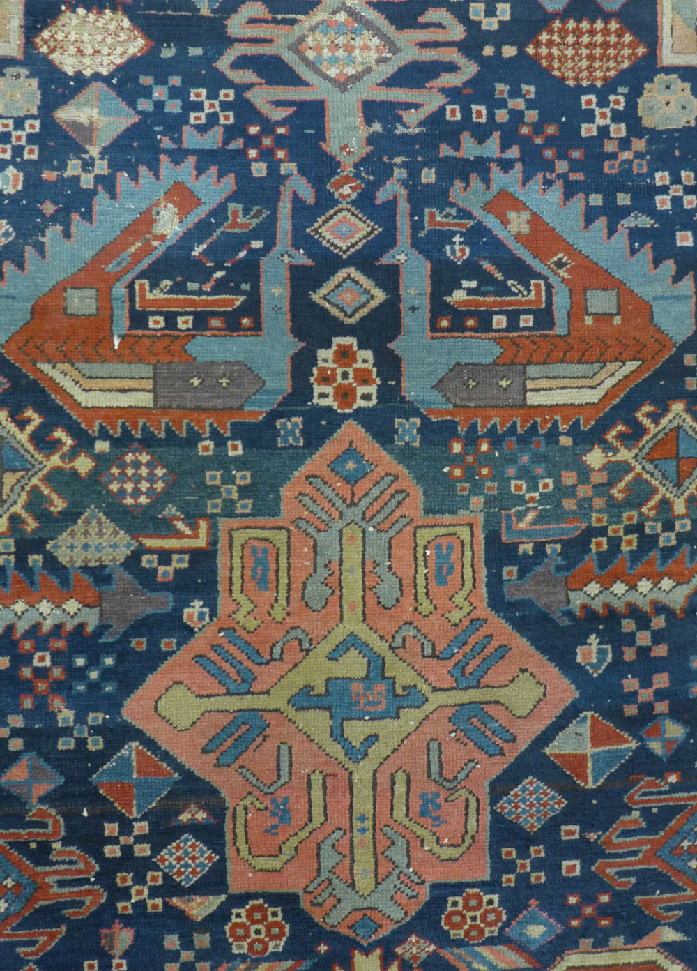 - Shirvan Akstafa carpet (detail), Azerbaijan, 1800 – 1900 at the Clothworkers’ Centre at Blythe House in Olympia, London. T.121-1977