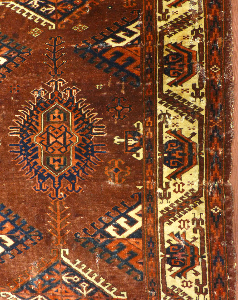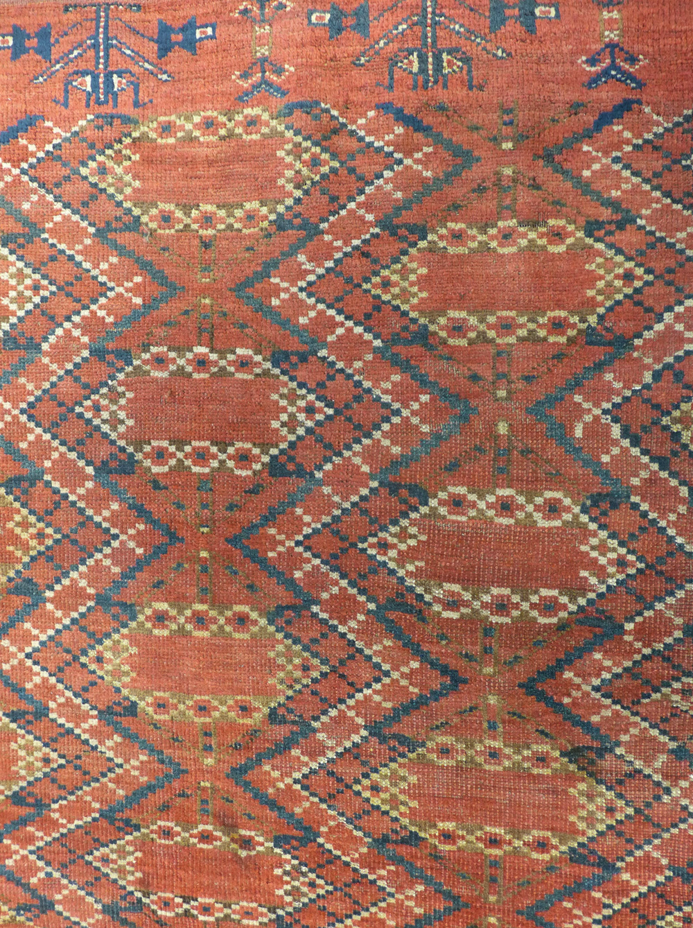 - Turkmen Ersari carpet (detail), early 19th century, from the Crosby collection in the Jameel study room at the Ashmolean Museum, Oxford. EA2014.12