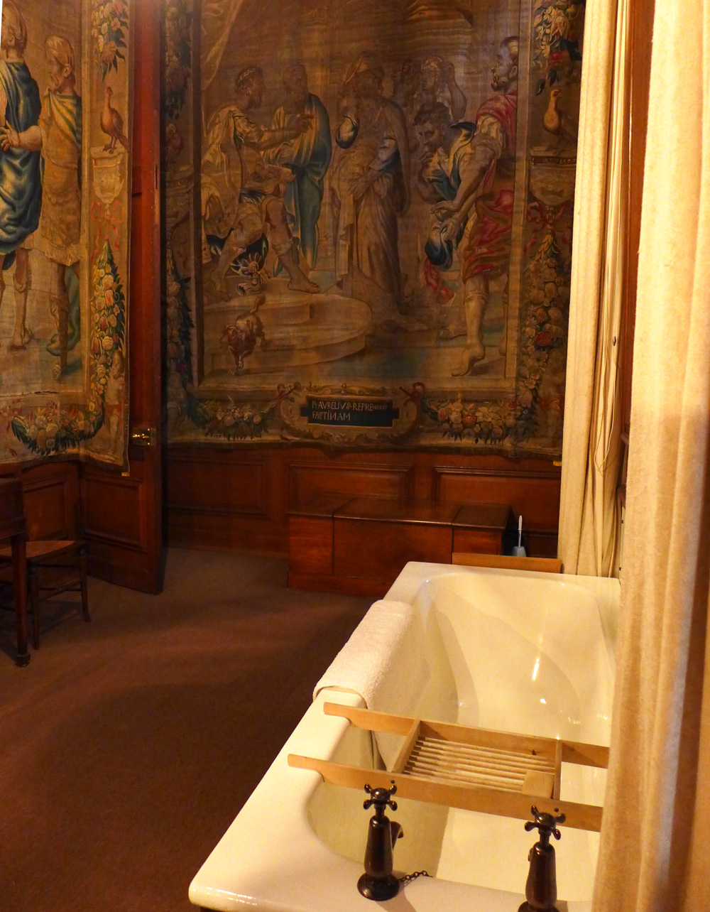 - Even the bathroom walls are adorned with tapestries at Boughton House, Northamptonshire