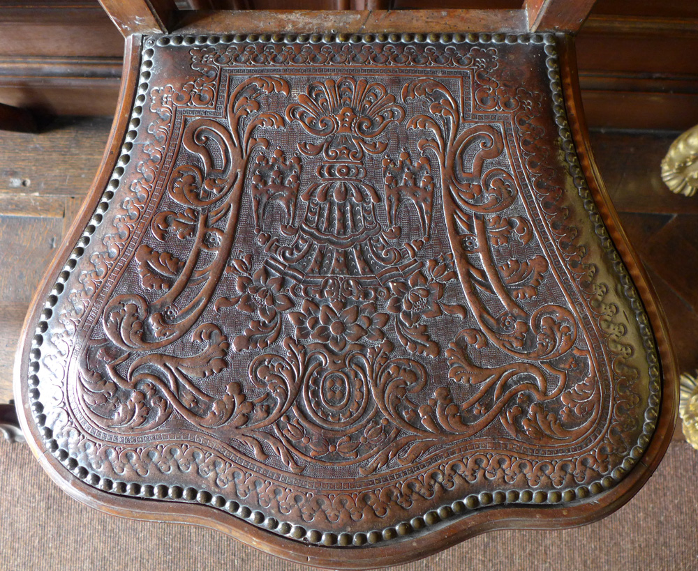 - Tooled leatherwork chair seat at Boughton House, Northamptonshire