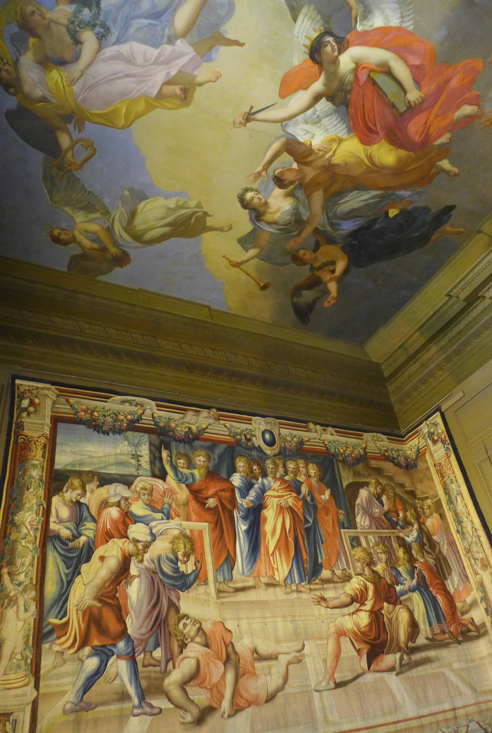 - Ceiling murals and Mortlake tapestries in Boughton House, Northamptonshire