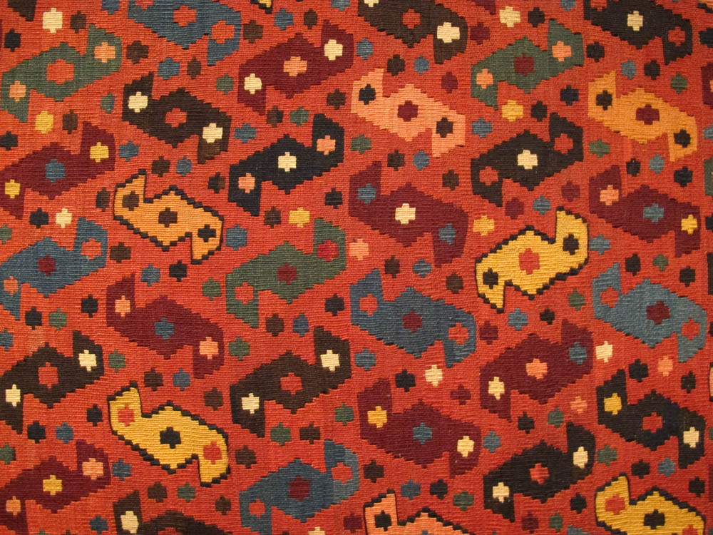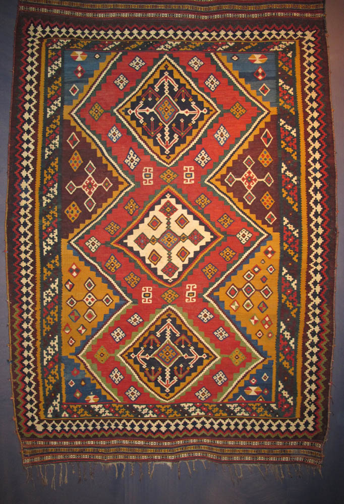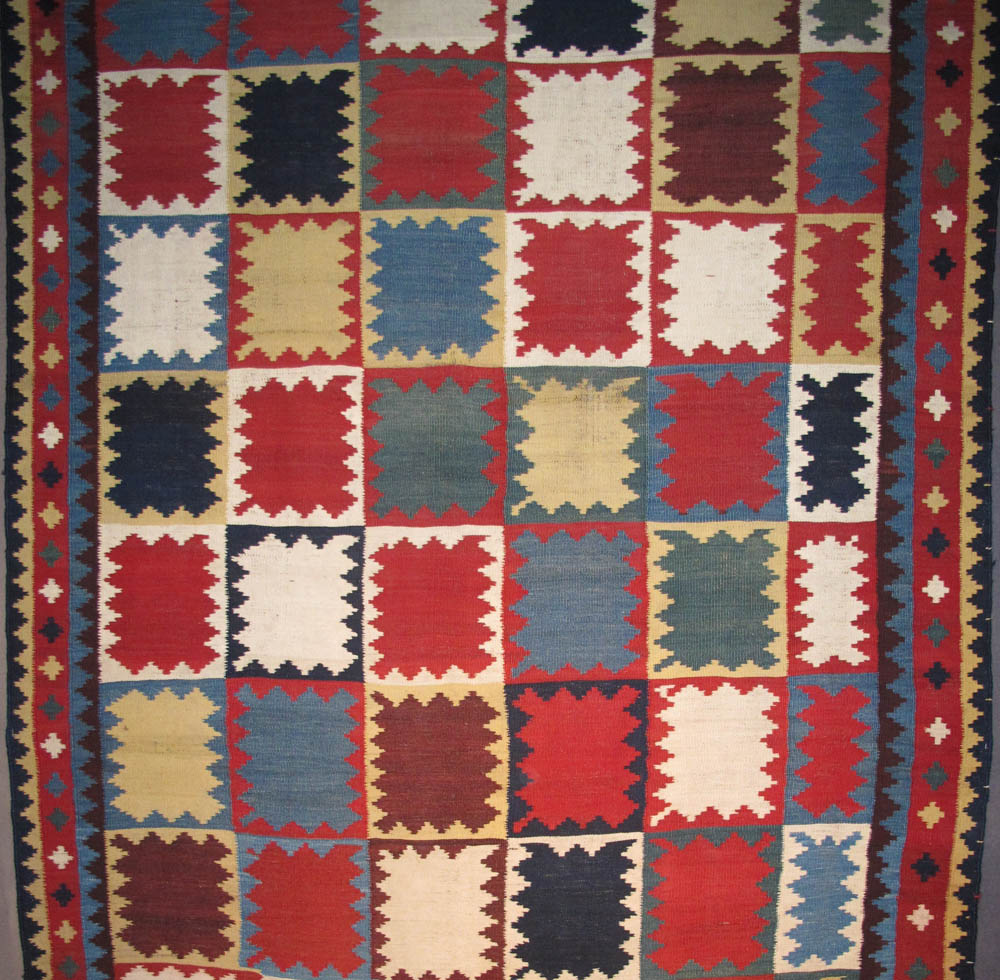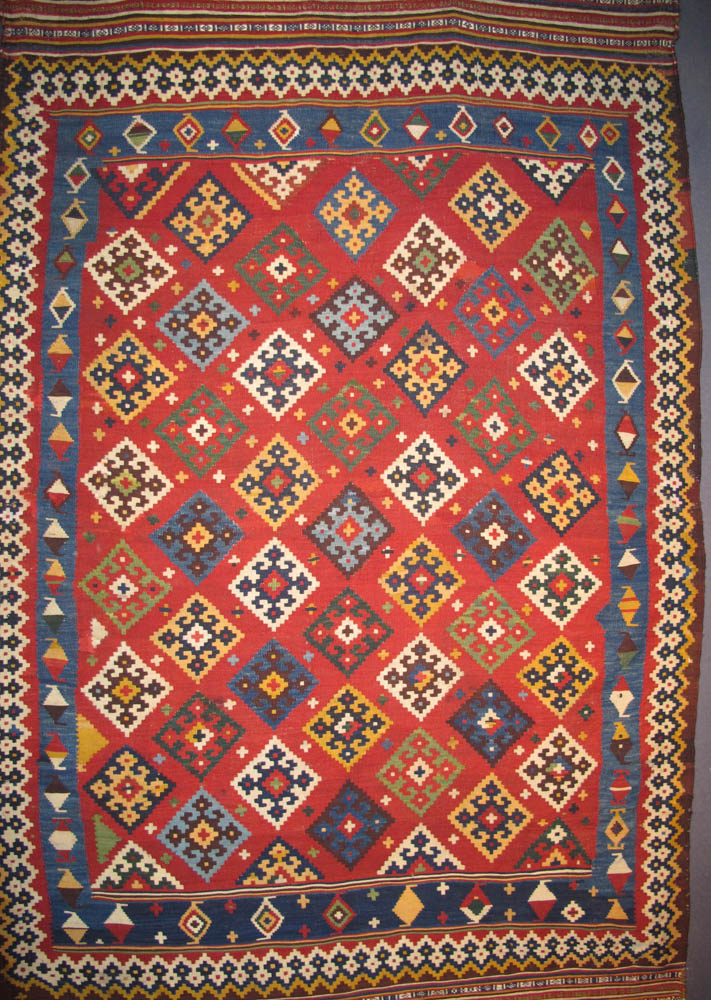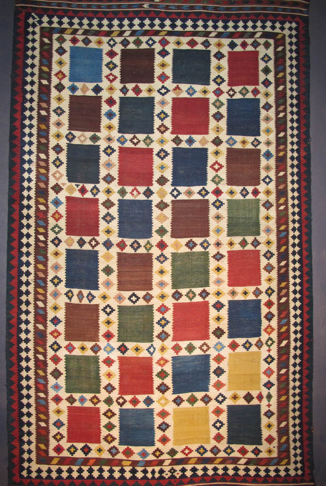 - Shadda, 19th century. Made from 2 parts, South-Caucasus, Azerbaijan 208 x 270 cm. 100 Kilims, Neiriz Collection, Halle
