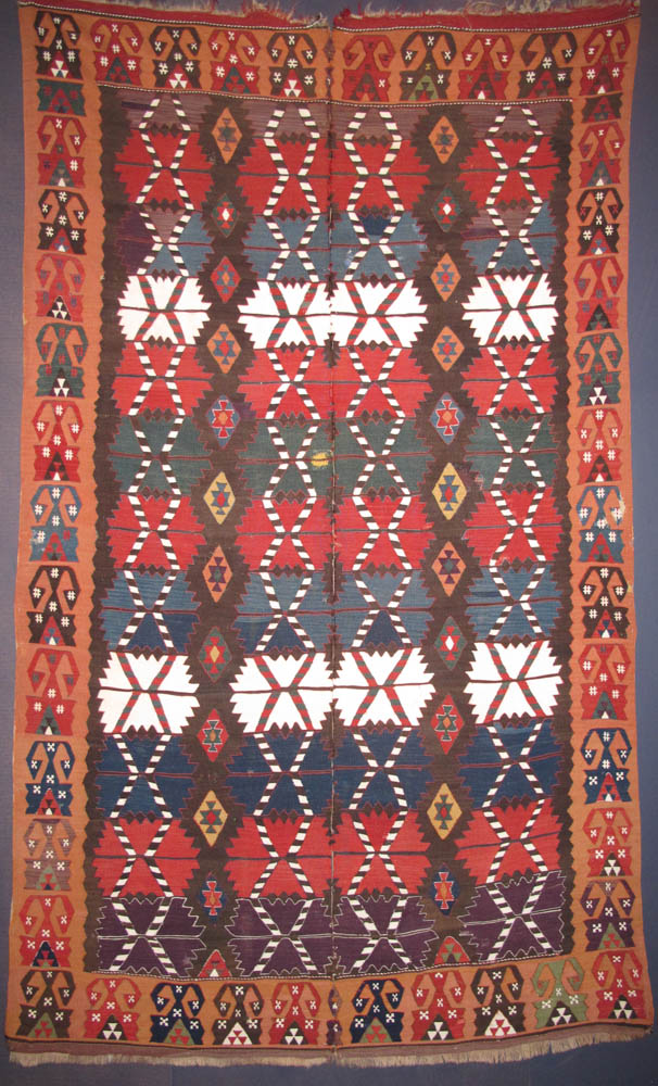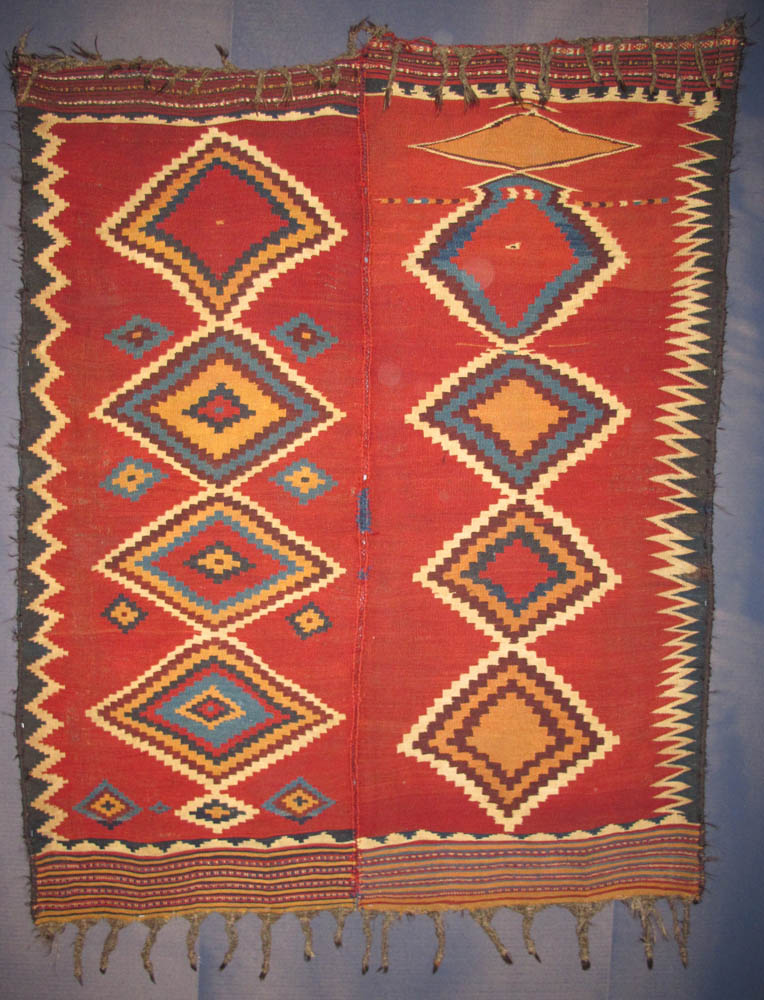 - Jajim (blanket), late 19th century Made from 2 parts South-Persia, Fars region, Luri tribes. 166 x 247 cm. 100 Kilims, Neiriz Collection, Halle