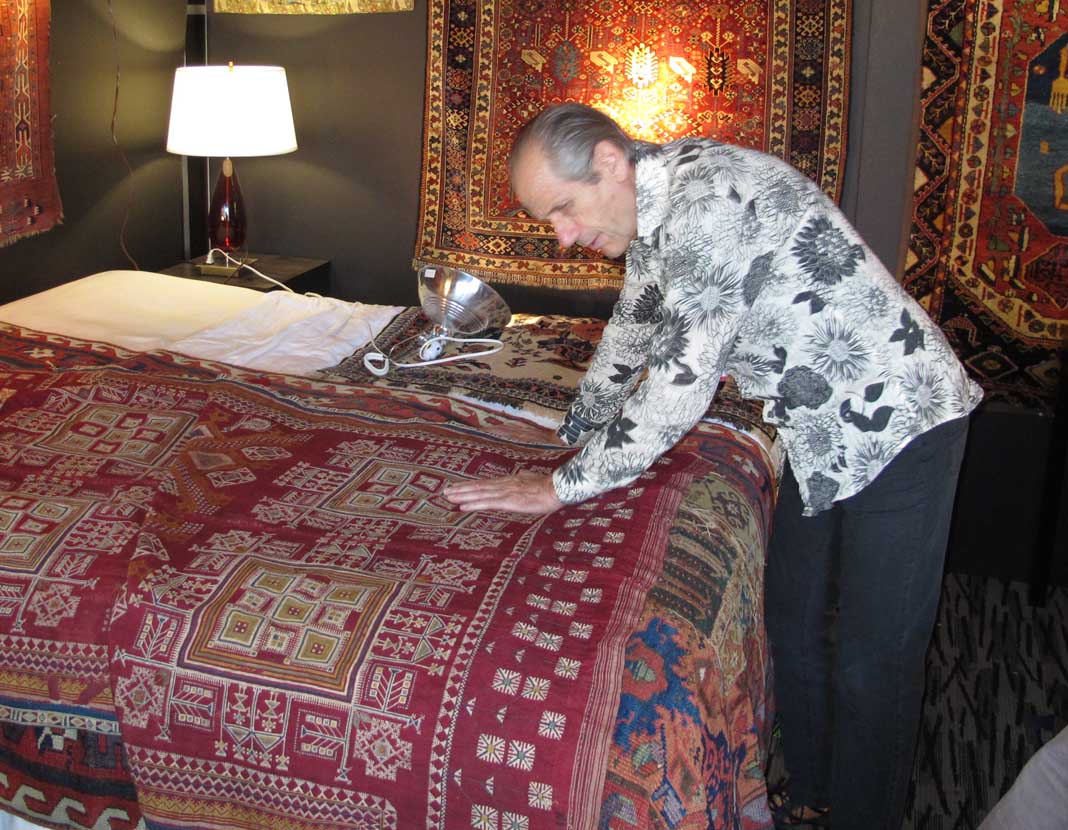The annual Capri motel rug and textile event got off to a good start on a gorgeous San Francisco autumn day with almost 150 paid guests turning up for the opening reception. As in previous years the show, which included a handful of new exhibitors replacing some of the older hands who couldn’t attend this year for various personal reasons, lacked nothing in terms of the quality and variety of the material on offer, much of it at realistically accessible prices.